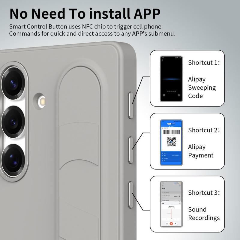 Echipată cu trei butoane inteligente compatibile NFC, această husă hibridă inteligentă vă permite să configurați accesul rapid la aplicații precum Camera, Lanterna sau Captură de ecran cu o singură apăsare. Fără încărcare, fără aplicații suplimentare - doar funcționalitate simplă, instantanee.