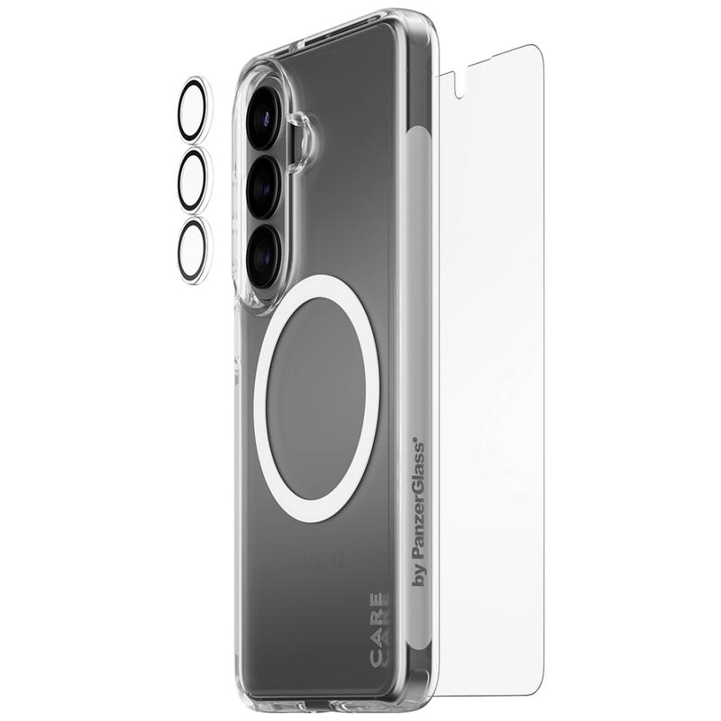 Oferă-i telefonului tău Samsung Galaxy S26 protecție completă dintr-o singură mișcare cu pachetul CARE by PanzerGlass 3-in-1 Explorer. Acest set all-in-one combină o protecție de ecran Ultra-Wide Fit, o protecție transparentă pentru lentila camerei și o carcasă transparentă rezistentă, astfel încât telefonul dvs. să fie protejat de la sticla frontală până la modulul camerei și partea din spate. Creat pentru viața de zi cu zi în oraș și aventurile de weekend, este conceput pentru a rezista la căderi, zgârieturi și lovituri, păstrând în același timp vizibil designul original al telefonului.