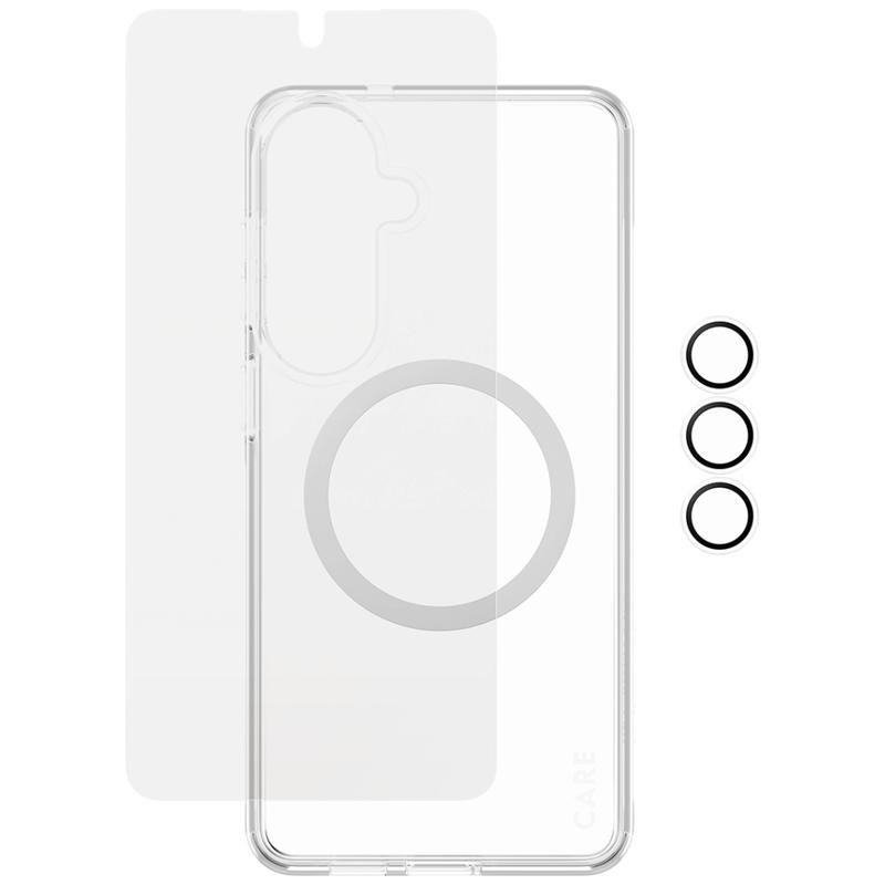 Oferă-i telefonului tău Samsung Galaxy S26+ protecție completă dintr-o singură mișcare cu pachetul CARE by PanzerGlass 3-in-1 Explorer. Acest set all-in-one combină o protecție de ecran Ultra-Wide Fit, o protecție transparentă pentru obiectivul camerei și o carcasă transparentă rezistentă, astfel încât telefonul dvs. să fie protejat de la sticla frontală până la modulul camerei și partea din spate. Creat pentru viața de zi cu zi în oraș și aventurile de weekend, este conceput pentru a rezista la căderi, zgârieturi și lovituri, păstrând în același timp vizibil designul original al telefonului.