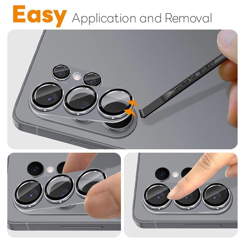 Spre deosebire de capacele de plastic pentru lentile, protectoarele din sticlă temperată cu rame metalice integrate oferă o rezistență de până la 3 ori mai mare la zgârieturi și căderi, prelungind durata de viață a lentilelor aparatului foto, menținând în același timp o estetică premium.