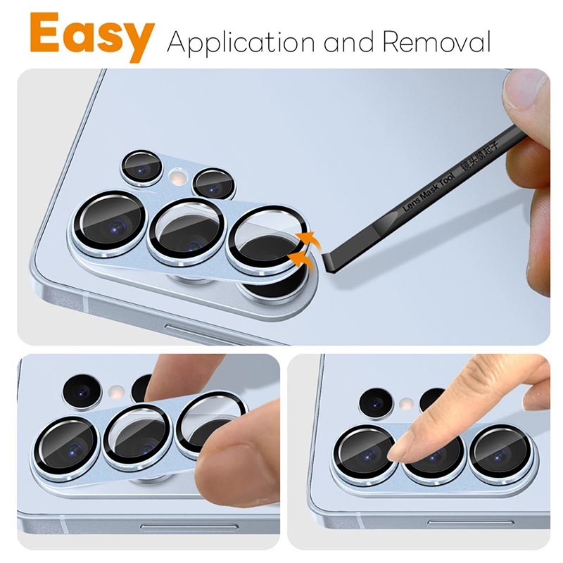 Spre deosebire de capacele de plastic pentru lentile, protectoarele din sticlă temperată cu rame metalice integrate oferă o rezistență de până la 3 ori mai mare la zgârieturi și căderi, prelungind durata de viață a lentilelor aparatului foto, menținând în același timp o estetică premium.
