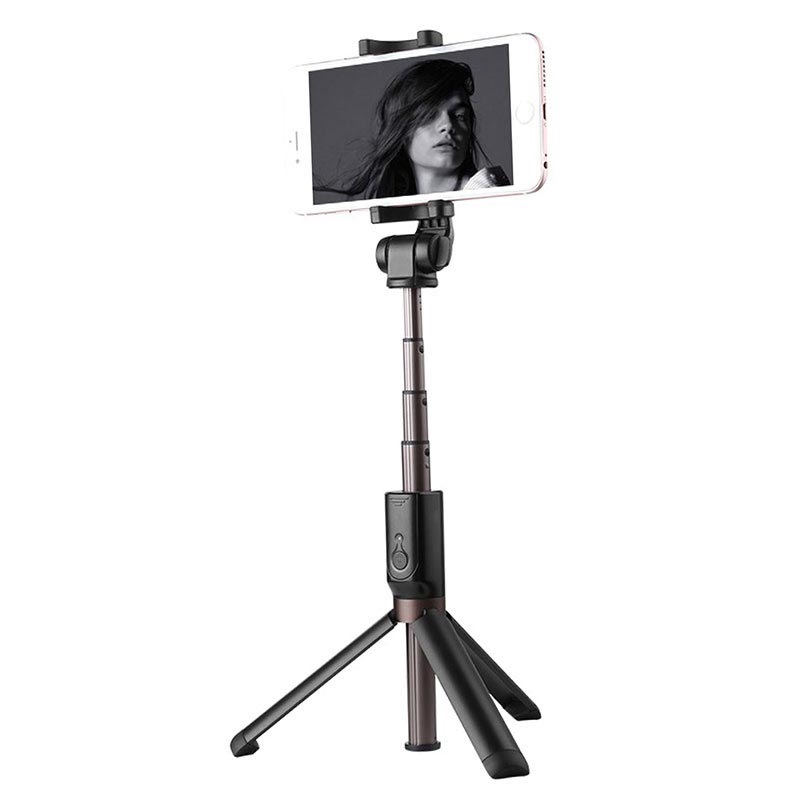 Mânerul acestui selfie stick vine cu o telecomandă Bluetooth detașabilă și se deschide pentru a se transforma într-un trepied la îndemână pentru a oferi stabilitate smartphone-ului tău. Această caracteristică vă permite să faceți fotografii de la până la 10 m în timp ce dispozitivul este montat în siguranță și gata pentru fotografiere.