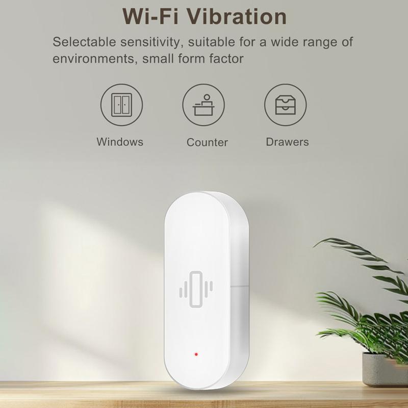 Primiți alerte instantanee când ceva este mutat, zguduit sau modificat. Acest senzor de vibrații Tuya Smart WiFi se conectează direct la rețeaua WiFi de 2,4 GHz și trimite notificări în timp real către aplicația Tuya Smart / Smart Life ori de câte ori detectează vibrații. Este un accesoriu de securitate simplu și compact pentru uși, ferestre, seifuri, sertare, biciclete, dulapuri și obiecte de valoare, care vă ajută să reacționați rapid în cazul unor mișcări neașteptate.