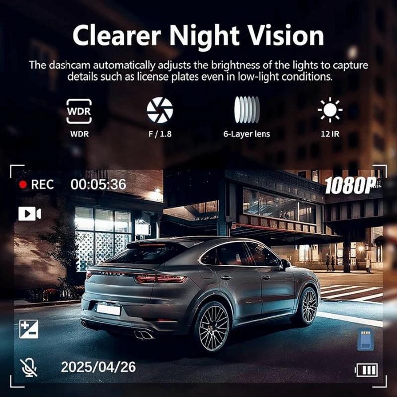- Senzor G + înregistrare în buclă: blochează automat clipurile cu coliziuni și suprascrie fișierele vechi când memoria este plină