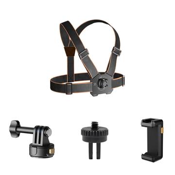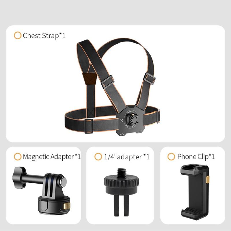 Set curea pentru piept pentru cameră de acțiune GP-032 - Bază magnetică cu eliberare rapidă, mini adaptor 1/4" și clemă pentru telefon pentru filmare POV