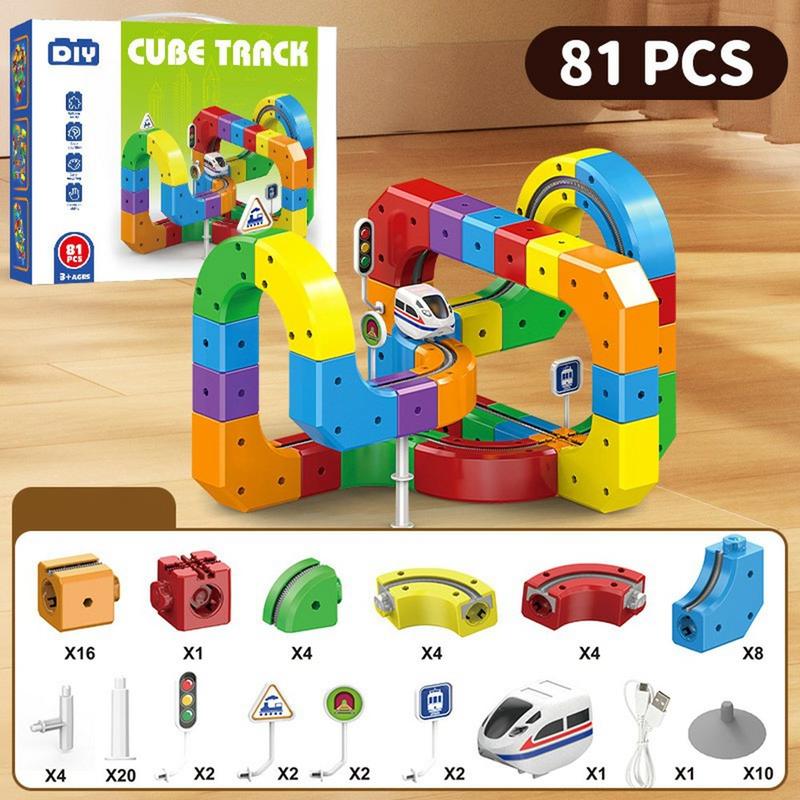 Set cale ferată magnetică 81 piese - jucărie de construcție STEAM educațională cu mini tren reîncărcabil