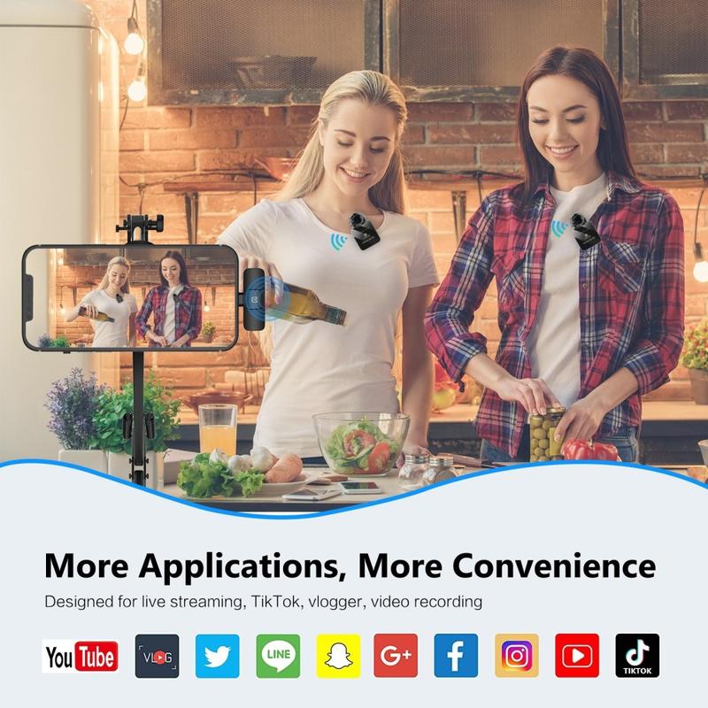 Configurația cu două microfoane este deosebit de utilă atunci când trebuie înregistrate simultan două persoane, fiind ideală pentru videoclipuri bazate pe dialog, interviuri, podcasturi, predare online și crearea de conținut colaborativ. Performanța cu latență redusă ajută la menținerea unei înregistrări audio fluide și naturale, în timp ce funcția ENC încorporată reduce zgomotul de fond pentru o vorbire mai clară în mediile de zi cu zi. Caracteristici precum modul compatibil cu Bluetooth, suportul pentru mutare inteligentă și îmbunătățirea reverberației adaugă, de asemenea, flexibilitate suplimentară pentru o utilizare audio mai creativă.