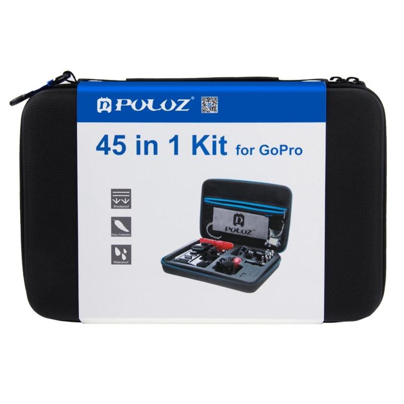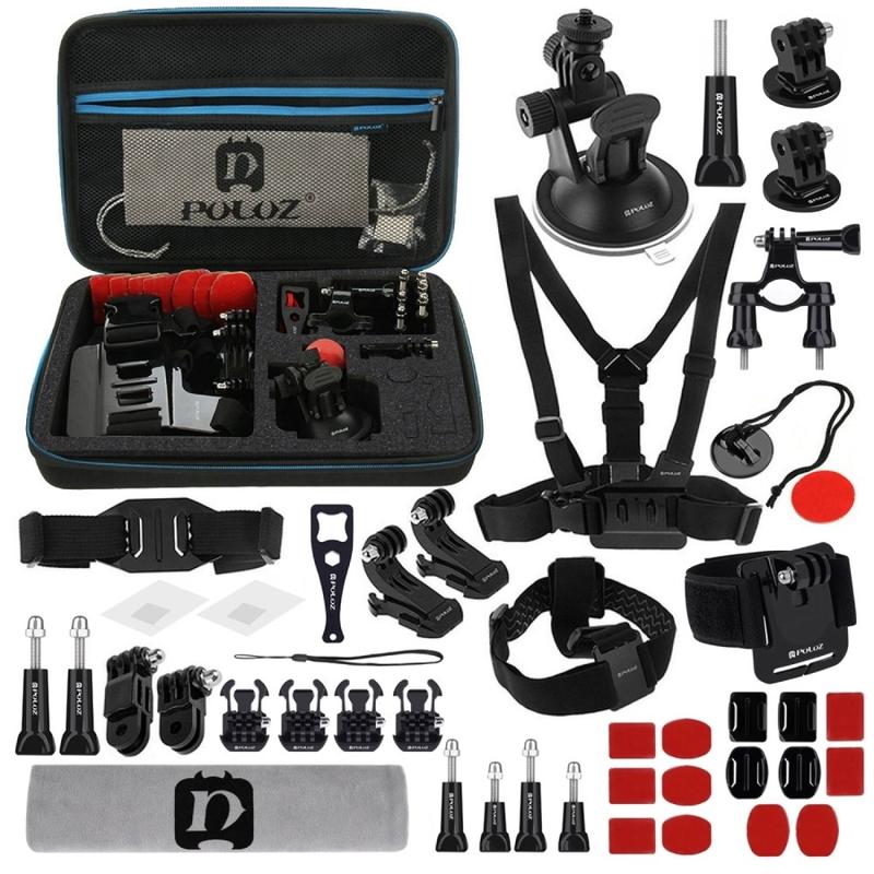 Set de accesorii pentru cameră de acțiune PULUZ PKT10 45-în-1 - Cutie mare de depozitare, suporturi pentru piept și cap, set de mânere plutitoare pentru GoPro