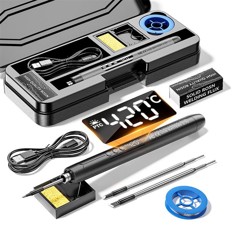 Set portabil de lipit fără fir cu USB-C - Stilou de lipit digital reîncărcabil de 1000 mAh cu 3 vârfuri, control al temperaturii