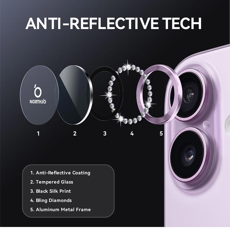 NORTHJO Rhinestone Lens Protector oferă ce este mai bun din ambele lumi - strălucire premium și durabilitate de înaltă rezistență. Îmbunătățește aspectul telefonului dvs. menținând în același timp claritatea fotografiilor profesionale și protecția de zi cu zi.