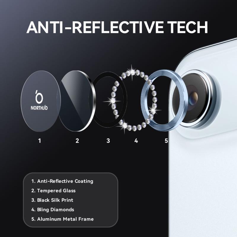 NORTHJO Rhinestone Lens Protector oferă ce este mai bun din ambele lumi - strălucire premium și durabilitate de înaltă rezistență. Îmbunătățește aspectul telefonului dvs. menținând în același timp claritatea fotografiilor profesionale și protecția de zi cu zi.