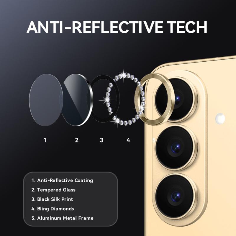 Adăugați strălucire și protecție iPhone-ului dvs. 17 cu NORTHJO Camera Lens Protector. Proiectat cu pietre strălucitoare și sticlă temperată tăiată cu precizie, acesta vă protejează obiectivul camerei foto de zgârieturi, praf și impact, adăugând în același timp o notă de eleganță și lux.