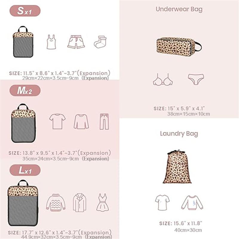 Set organizator de călătorie cu imprimeu de leopard 6 piese - pungi de compresie care economisesc spațiu pentru haine și articole de toaletă