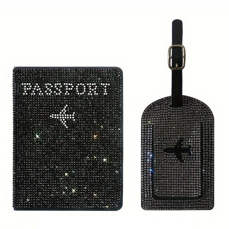Set titular de pașapoarte și etichetă de bagaje cu pietre prețioase - Organizator de călătorie din poliuretan strălucitor