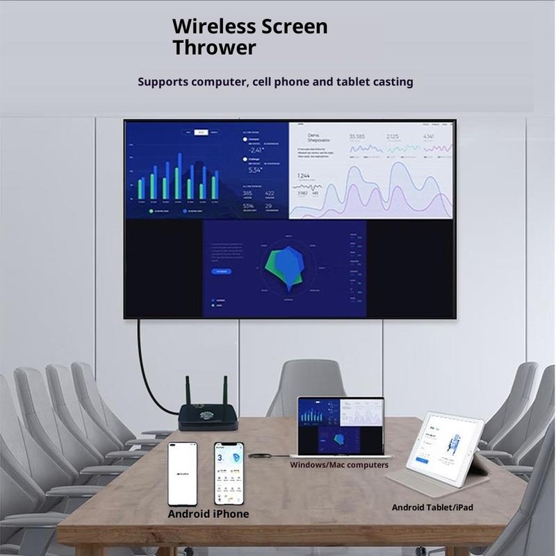 Kiturile de transmițătoare și receptoare de afișare wireless sunt populare deoarece pot reduce aglomerația de cabluri și fac prezentările mai ușor de gestionat. Seturile cu transmițătoare și receptoare separate sunt deosebit de utile în mediile profesionale, unde se preferă adesea o conexiune stabilă punct-la-punct. Suportul HDMI și VGA într-un singur receptor este, de asemenea, valoros, deoarece multe locuri de muncă și școli utilizează încă o combinație de ecrane mai noi și mai vechi. Transmițătoarele USB-C au devenit mai comune, deoarece laptopurile și tabletele moderne se bazează din ce în ce mai mult pe USB-C pentru ieșirea video.