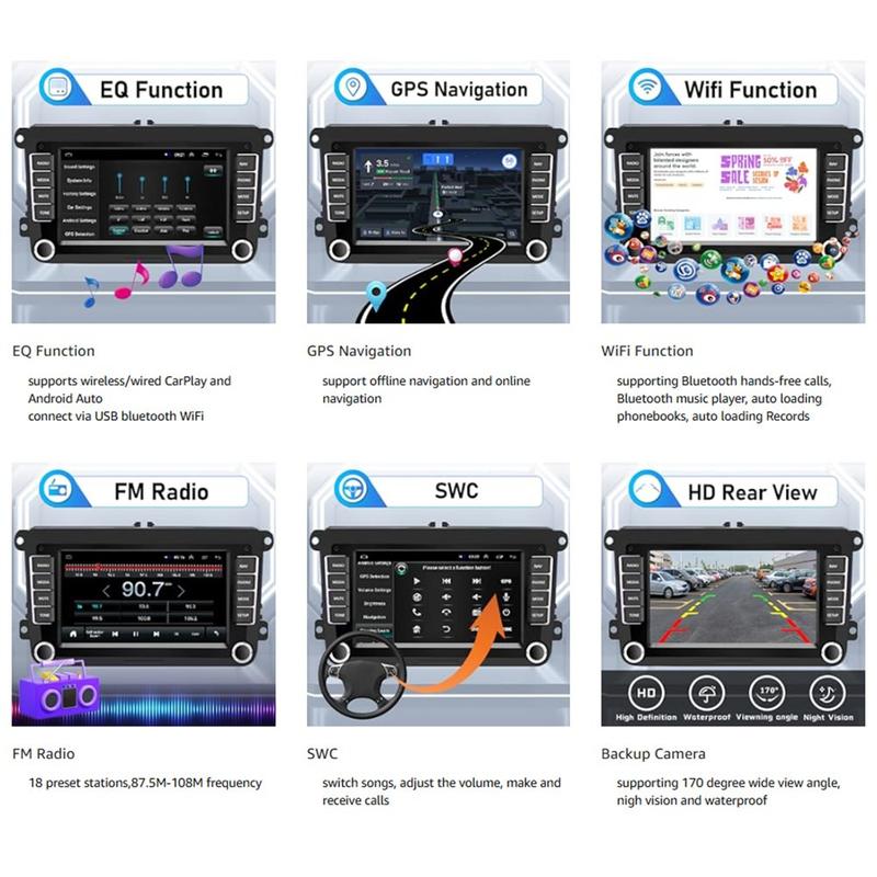 Ecranul tactil de 7 inci cu rezoluție de 1024 x 600 oferă imagini clare și control simplu, în timp ce camera de marșarier inclusă contribuie la o manevră de mers înapoi mai sigură și mai ușoară. Cu 2 GB RAM și 32 GB spațiu de stocare, acest sistem audio auto este o soluție practică pentru șoferii care doresc funcții inteligente moderne într-un singur sistem auto complet.