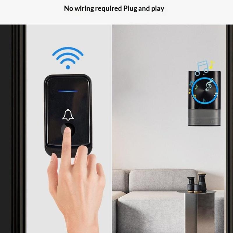 Sonerie wireless impermeabilă N189 - priză UE, rază de acțiune de 200m, 52 de melodii, IP44, bliț LED, 4 niveluri de volum (silențios), funcție de memorie - 1 transmițător + 1 receptor