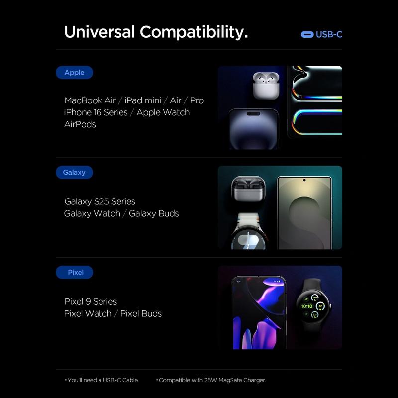 Spigen EE673EU este soluția perfectă de încărcare all-in-one pentru utilizatorii cu mai multe dispozitive. Cu livrare puternică de energie, gestionare inteligentă a energiei și caracteristici de siguranță robuste, asigură o încărcare rapidă fiabilă oriunde v-ați afla. Compact, eficient și construit cu calitatea de încredere Spigen, este o alegere excelentă pentru călătorii, muncă și utilizare zilnică.