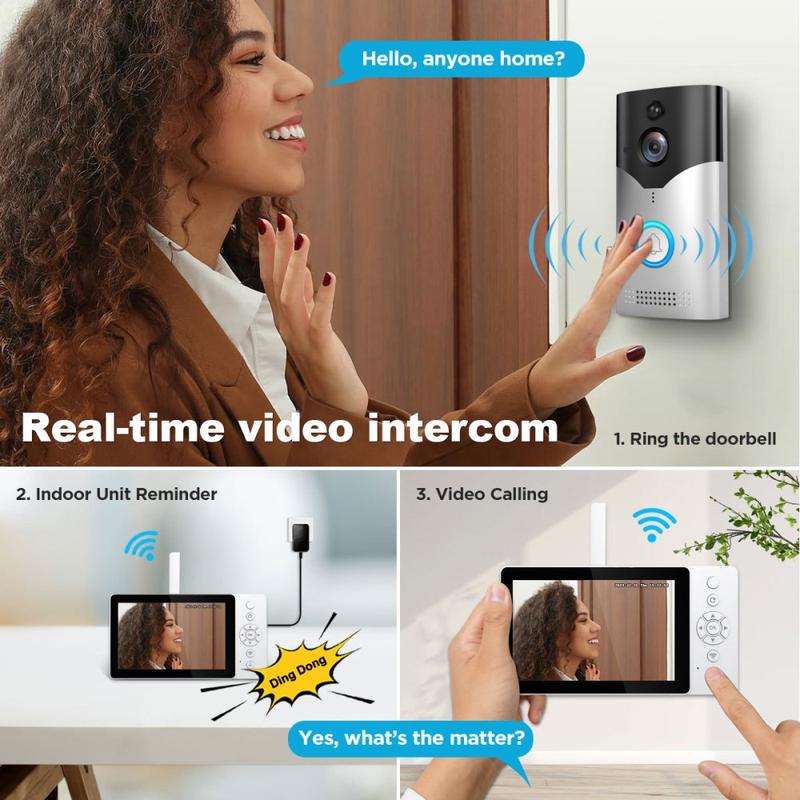 SRIHOME DH051_002_008 Set sonerie inteligentă fără fir - interfon video HD 4MP cu ecran de 5", WiFi 6 și audio bidirecțional (mufă UE)