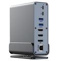 Stație de andocare USB-C 15-în-1 cu suport (MST) - Triplu 4K@60Hz (2x HDMI și DP), USB 3.2 10Gbps, 100W PD, Gigabit Ethernet, SD/TF, audio 3,5 mm