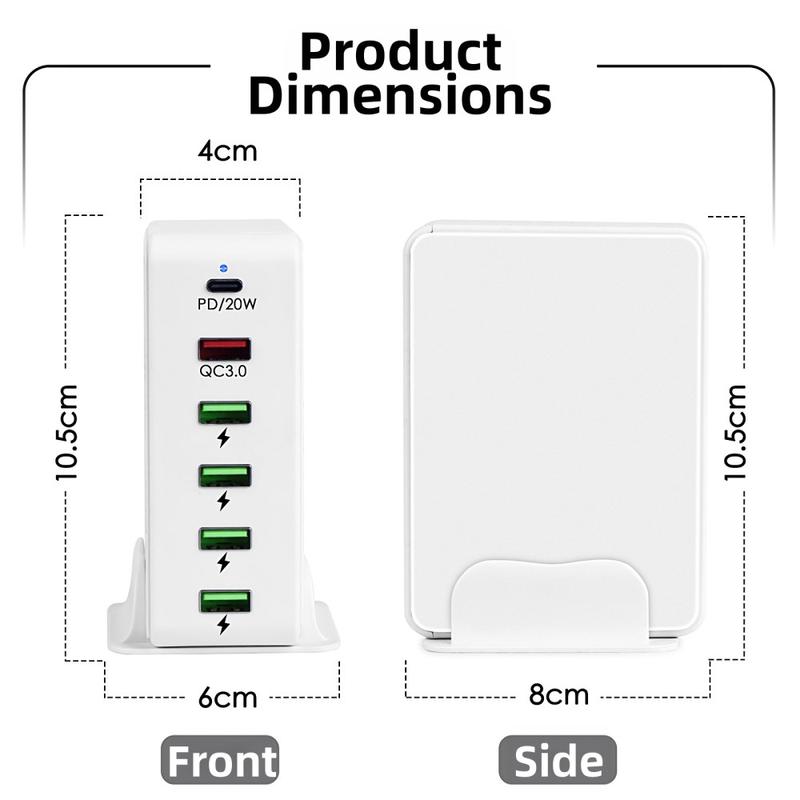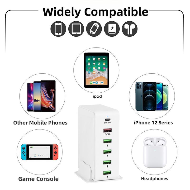 Cu un port PD, un port QC3.0 și patru ieșiri USB-A suplimentare, puteți încărca mai multe dispozitive simultan - perfect pentru stațiile de lucru, familii sau călători care transportă mai multe gadgeturi.