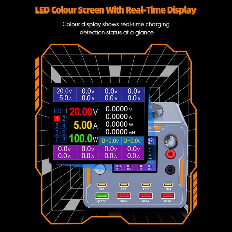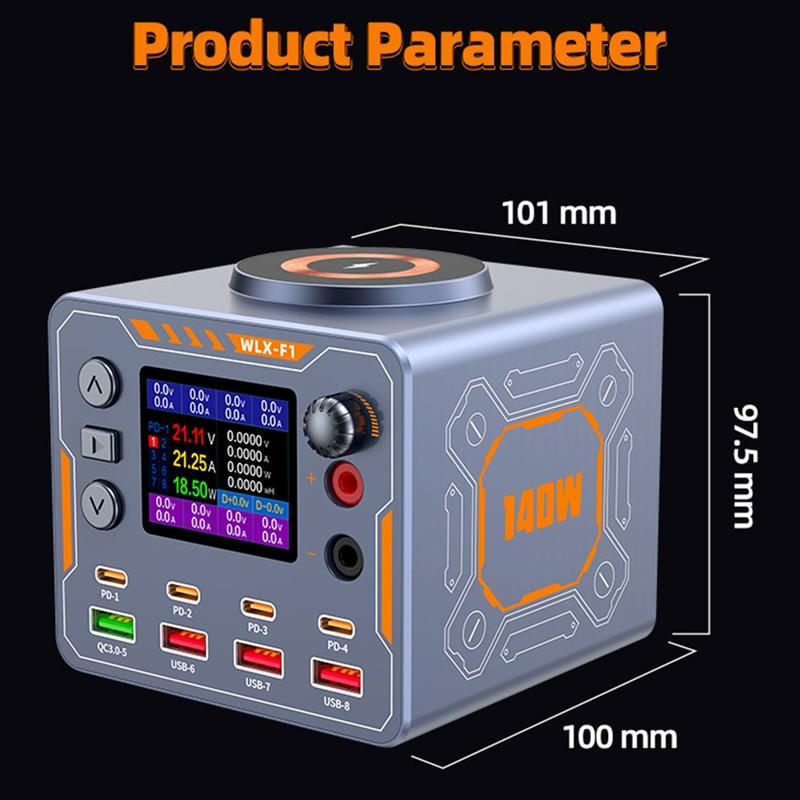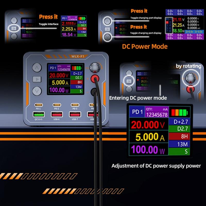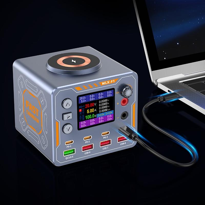Cu o ieșire pe un singur port de până la 100 W, WLX-F1 alimentează eficient dispozitivele cu cerere mare, cum ar fi MacBook-urile și laptopurile USB-C. De asemenea, are o ieșire DC de precizie reglabilă (1,8-12V, 2A), ceea ce îl face ideal pentru testarea, repararea și diagnosticarea echipamentelor electronice.
