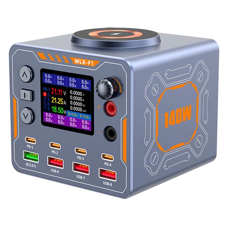 Uimitoarea stație de încărcare multidispozitiv WLX-F1 140W este un încărcător de birou puternic și versatil, proiectat pentru laptopuri, telefoane, tablete, dispozitive portabile și chiar reparații electronice. Echipată cu 8 opțiuni de încărcare, inclusiv patru porturi de încărcare rapidă PD, un port QC3.0, trei porturi USB și un pad de încărcare wireless de 15W, aceasta oferă o soluție completă de încărcare pentru acasă, la birou sau în atelier.