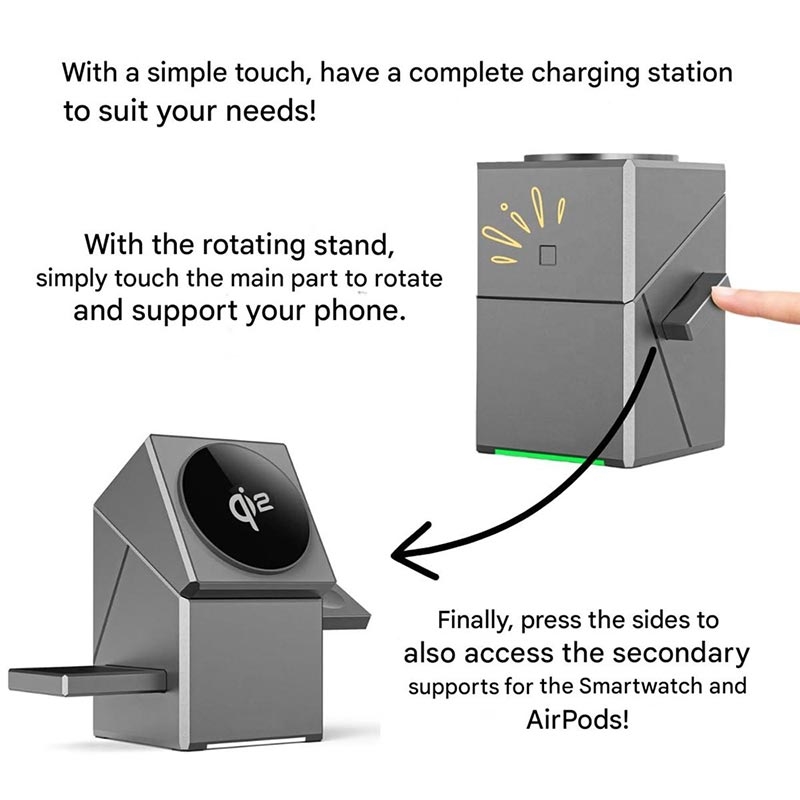 Încărcătorul wireless magnetic Qi2 de 15W este o soluție de încărcare 3 în 1 rafinată, concepută pentru utilizatorii Apple moderni care apreciază atât performanța, cât și designul. Construcția sa rotativă proiectată permite încărcătorului să se transforme dintr-un cub compact într-o stație de încărcare complet funcțională, creând o configurație curată și elegantă pentru utilizarea zilnică. Cu încărcare magnetică rapidă Qi2, aliniere precisă și o formă care economisește spațiu, oferă o experiență de încărcare fără probleme acasă, la birou sau în timpul călătoriilor.