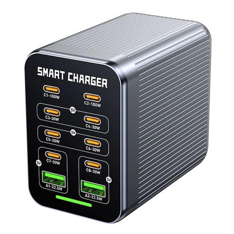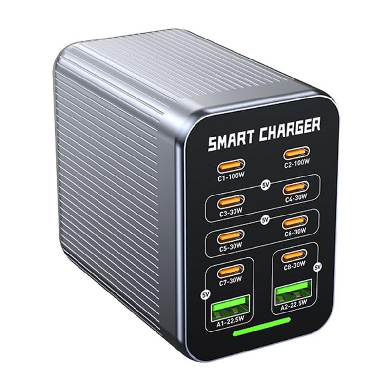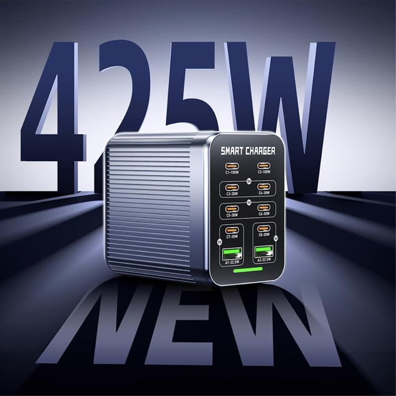 Stație de încărcare desktop WLX-G1 425W GaN cu 10 porturi - Încărcător rapid pentru mai multe dispozitive cu PD/QC/PPS, răcire inteligentă cu ventilator, 100-240V