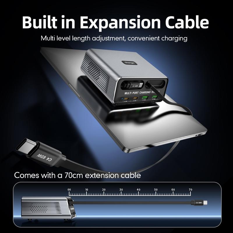 Curățați-vă biroul și încărcați totul dintr-un singur hub compact. Stația de încărcare desktop WLX-60C GaN combină 6 ieșiri într-o singură unitate integrată: 2 porturi USB-C, 2 porturi USB-A și 2 cabluri USB-C retractabile încorporate. Trageți cablul de 70 cm când aveți nevoie de el și lăsați-l să se retragă înapoi cu ajutorul sistemului de stocare magnetic când ați terminat, contribuind la reducerea aglomerării de cabluri pe birourile de la birou, în configurațiile de jocuri și în spațiile de lucru de acasă.
