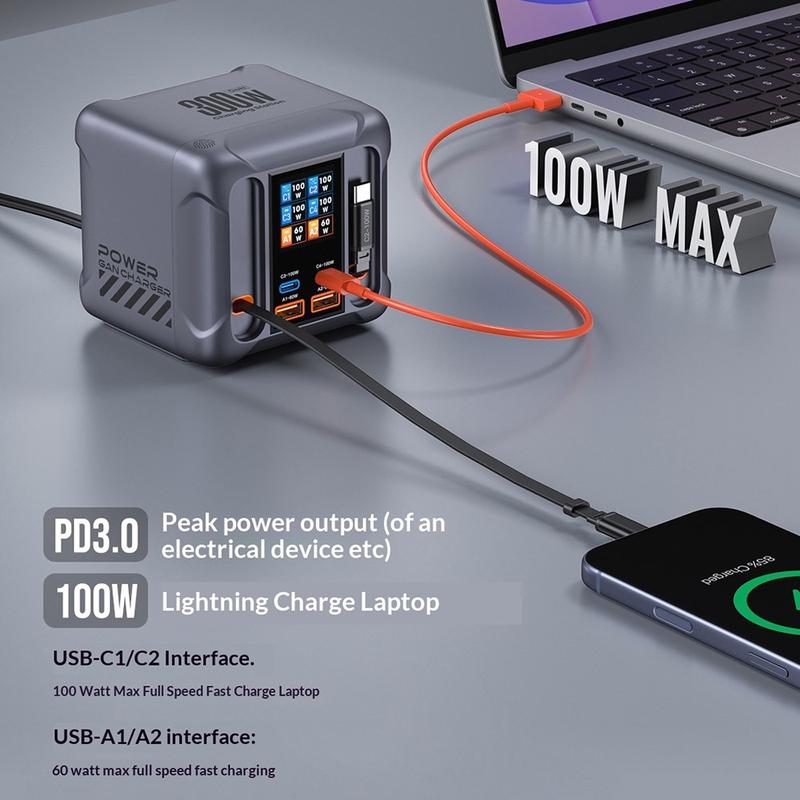 - Ieșire USB-C1/C2/C3/C4: 5V/3A, 9V/3A, 12V/3A, 15V/3A, 20V/5A; PPS: 5V-21V, 5A, până la 100W