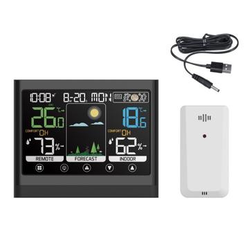Stație meteo fără fir cu ecran tactil color, termometru, higrometru și ceas cu alarmă