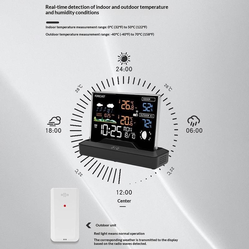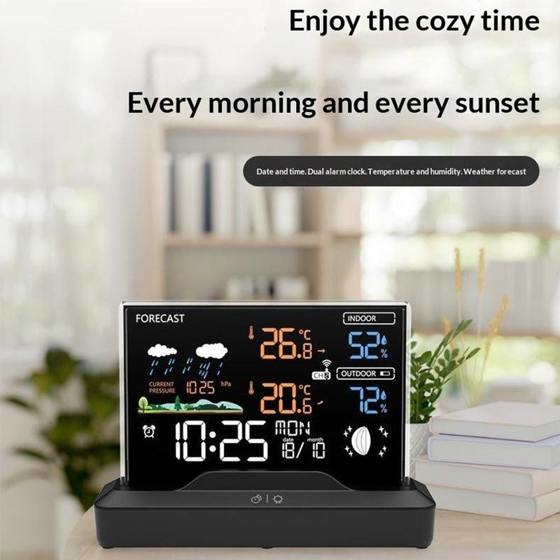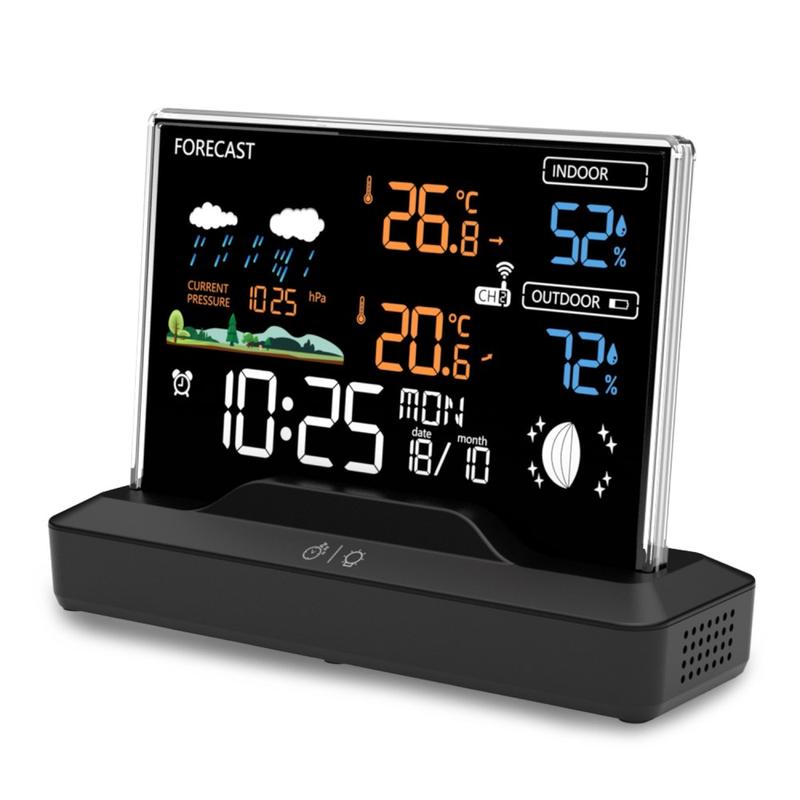 Stație meteo fără fir cu ecran LCD color, termometru pentru interior/exterior, higrometru și ceas cu alarmă