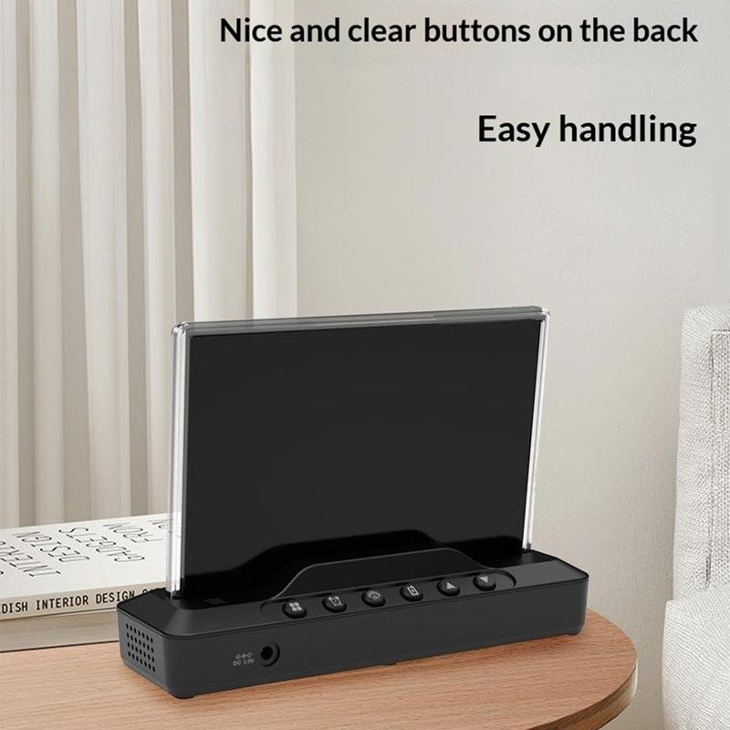 - Utilizarea ca ceas cu alarmă de noptieră cu informații meteorologice