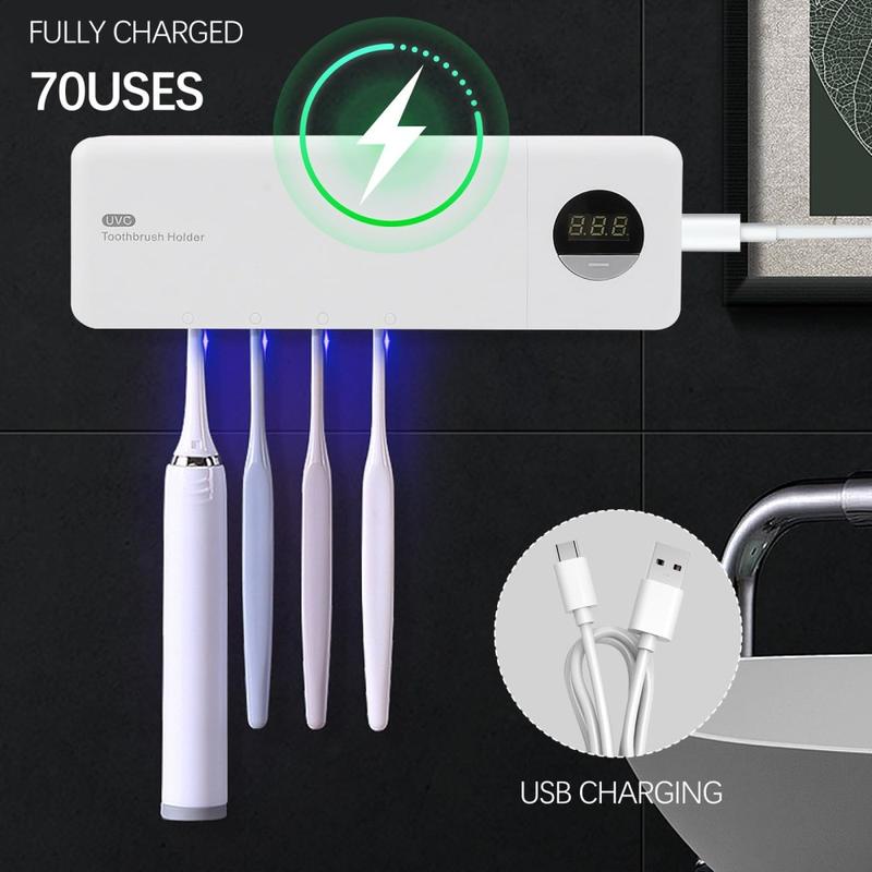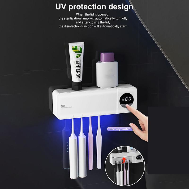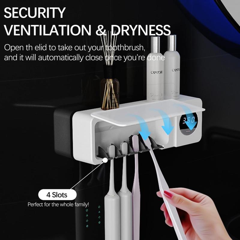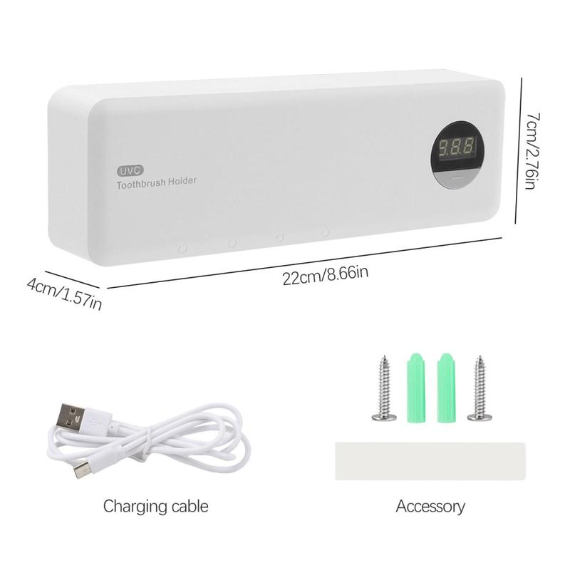 Sterilizator UV pentru periuța de dinți - Suport pentru periuța de dinți montat pe perete cu senzor automat și afișaj digital