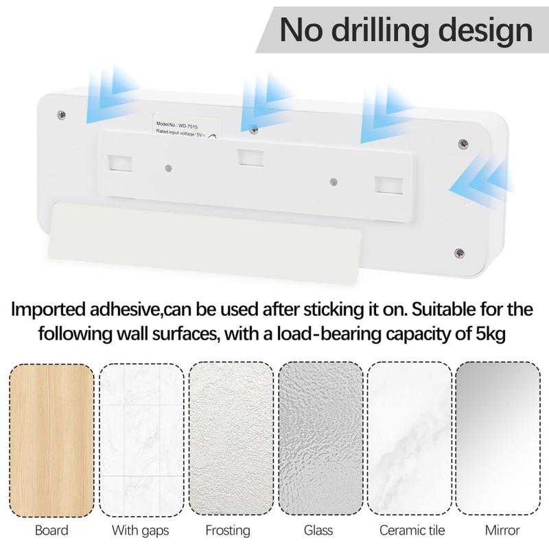 - Design montat pe perete - Instalarea adezivă ușoară economisește spațiu, nu necesită găurire și protejează pereții băii.