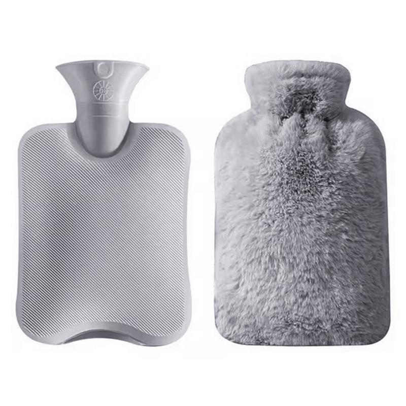 Sticlă de apă caldă reîncărcabilă de 2000 ml cu capac detașabil din blană falsă - încălzitor de mâini și picioare de iarnă (fără BPA)