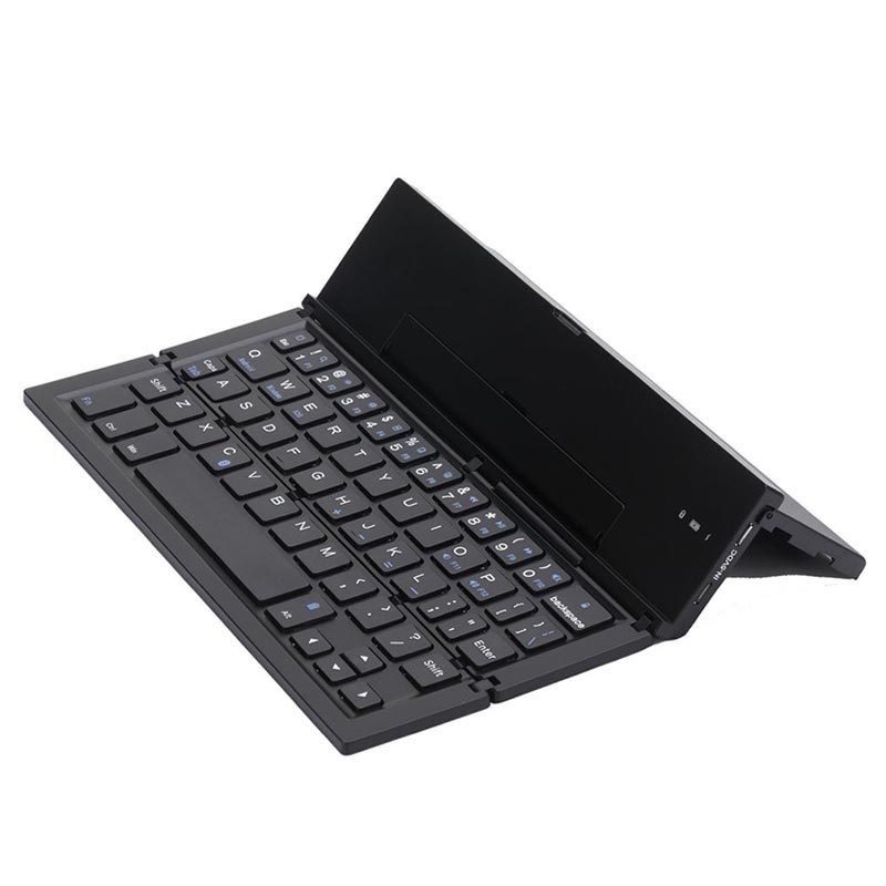 Această tastatură pliabilă Bluetooth ține dispozitivul accesibil și îl plasează într-un unghi optim de scriere. Butoanele tactile asigură o precizie absolută și o experiență de utilizare confortabilă.