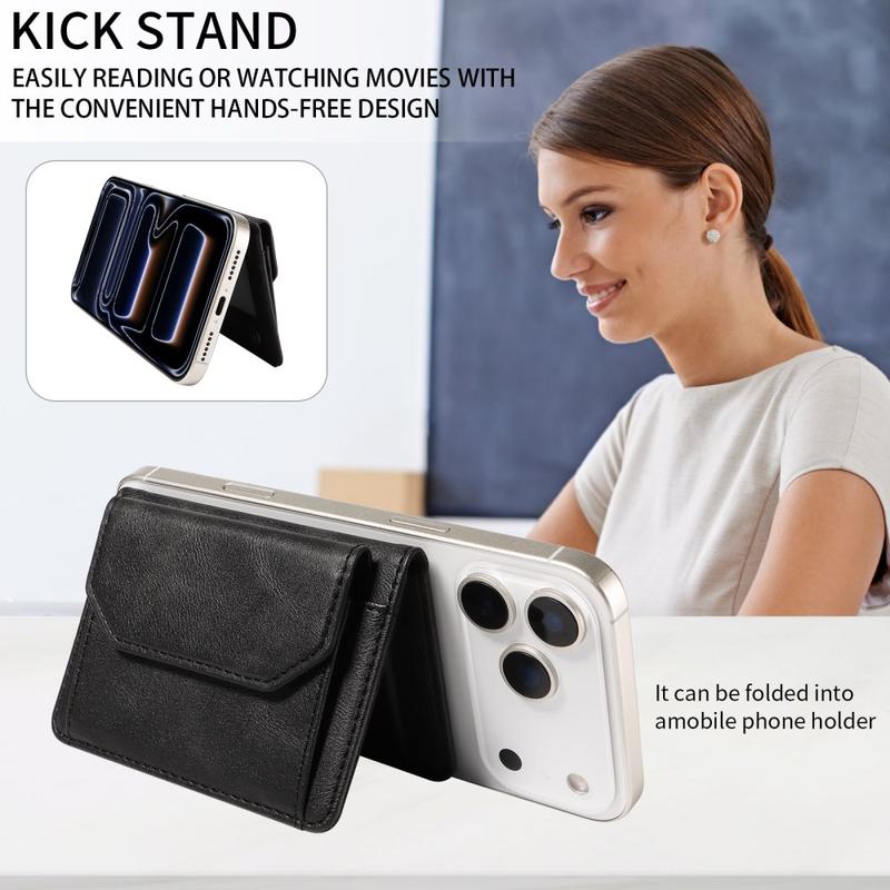 Designul pliabil permite portofelului să se transforme într-un suport pentru telefon, oferind o vizualizare confortabilă cu mâinile libere pentru videoclipuri, apeluri video, lectură sau navigare acasă, la serviciu sau în timpul călătoriilor.