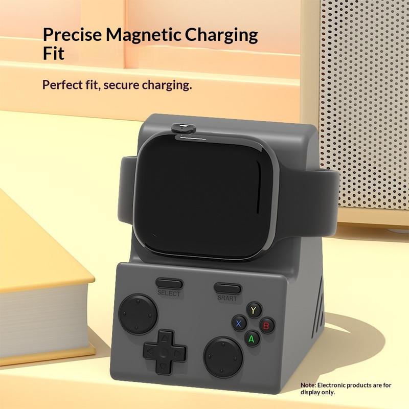 Suport de încărcare din silicon în stil consolă de jocuri pentru Apple Watch - stație de încărcare antiderapantă cu spațiu de depozitare pentru cablu