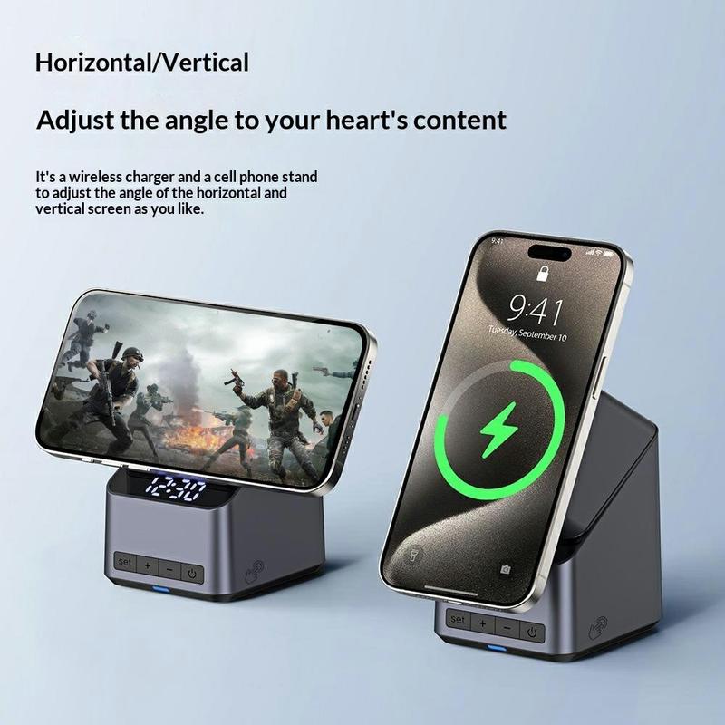 Păstrează-ți biroul ordonat și dispozitivele esențiale încărcate cu suportul de încărcare wireless 3-în-1 X11 Qi2 de 15W. Această stație de încărcare practică este concepută pentru confortul de zi cu zi, combinând încărcarea wireless pentru telefon, ceasul inteligent și căștile cu un ceas digital cu LED încorporat într-o singură unitate compactă de birou.