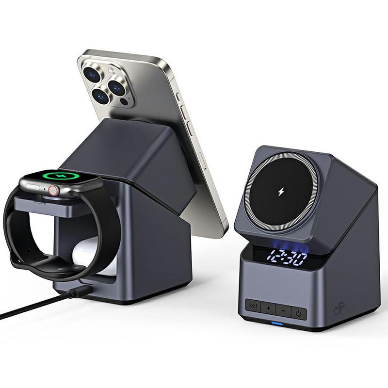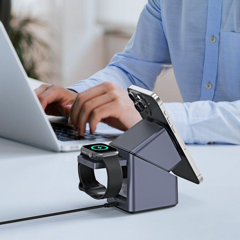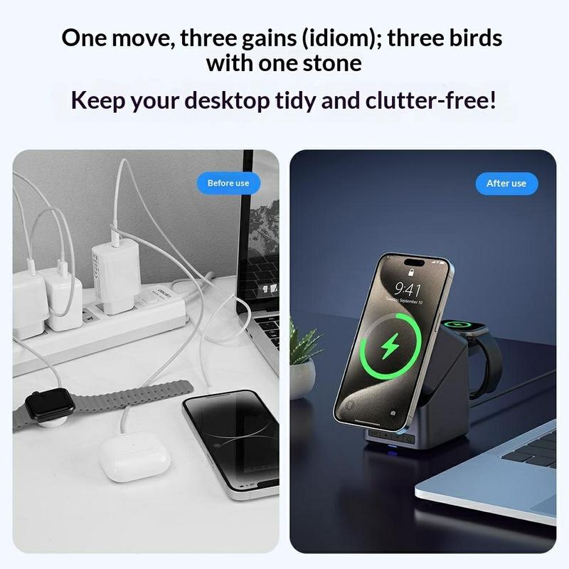 - Încărcare 3-în-1 pentru telefon, ceas inteligent și căști
