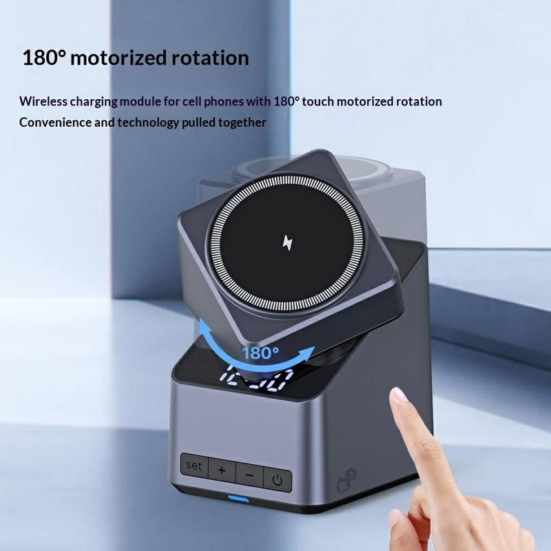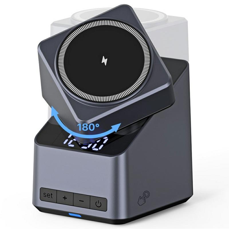 Suport de încărcare wireless 3-în-1 X11 Qi2 de 15W cu ceas LED - Stație de încărcare magnetică rotativă pentru telefon, ceas și căști