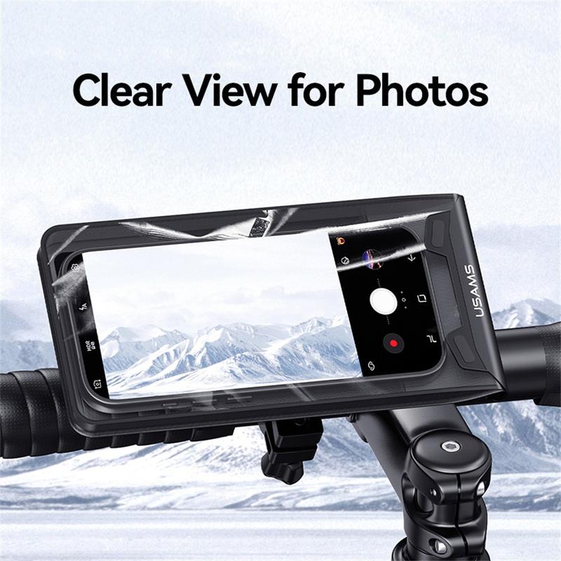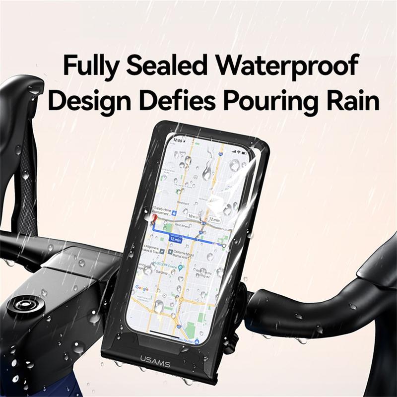 Suport impermeabil pentru telefon pentru bicicletă Usams ZJ083 cu fereastră transparentă - Suport rotativ la 360 de grade pentru ghidon (4,7-7,2 in)