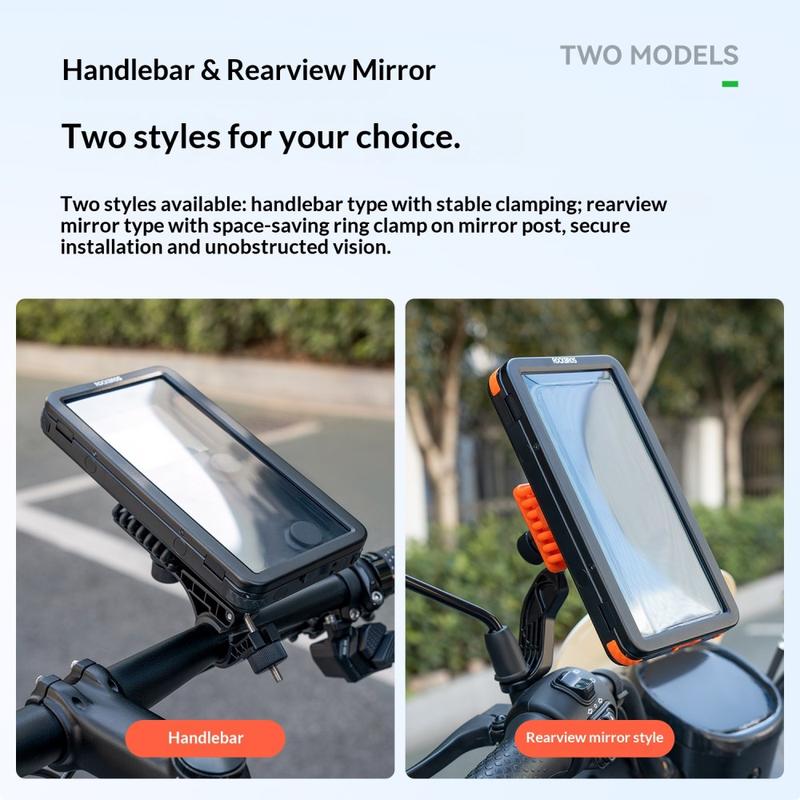 Călătoriți cu telefonul protejat și ușor de vizualizat folosind suportul magnetic impermeabil pentru ghidon ROCKBROS. Conceput pentru biciclete și biciclete electrice, acesta combină un design cu capac rabatabil și rezistență la apă IPX4 pentru a vă proteja telefonul de ploaie și stropi de pe șosea. Un modul magnetic puternic și un tampon antiderapant din silicon asigură o montare rapidă și o fixare stabilă, în timp ce designul cu articulație sferică vă permite să rotiți ecranul la 360 de grade pentru cel mai bun unghi de vizualizare. Deschiderile speciale permit încărcarea și utilizarea camerei în timpul mersului.
