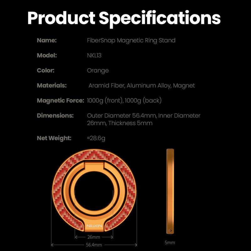 Nillkin FiberSnap Magnetic Ring Stand îmbină materialele premium cu funcționalitatea flexibilă pentru a îmbunătăți utilizarea zilnică a telefonului. Fabricat din fibră aramidică ușoară și aluminiu anodizat, acesta oferă o estetică tehnologică rafinată, oferind în același timp o prindere sigură și o vizualizare fără efort cu mâinile libere. Proiectat pentru utilizarea MagSafe fără întreruperi, se adaptează ușor la muncă, călătorii și viața de zi cu zi, fără să încurce.