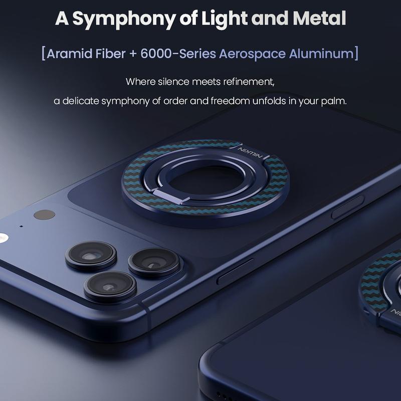 Nillkin FiberSnap Magnetic Ring Stand îmbină materialele premium cu funcționalitatea flexibilă pentru a îmbunătăți utilizarea zilnică a telefonului. Fabricat din fibră aramidică ușoară și aluminiu anodizat, acesta oferă o estetică tehnologică rafinată, oferind în același timp o prindere sigură și o vizualizare fără efort cu mâinile libere. Proiectat pentru utilizarea MagSafe fără întreruperi, se adaptează ușor la muncă, călătorii și viața de zi cu zi, fără să încurce.