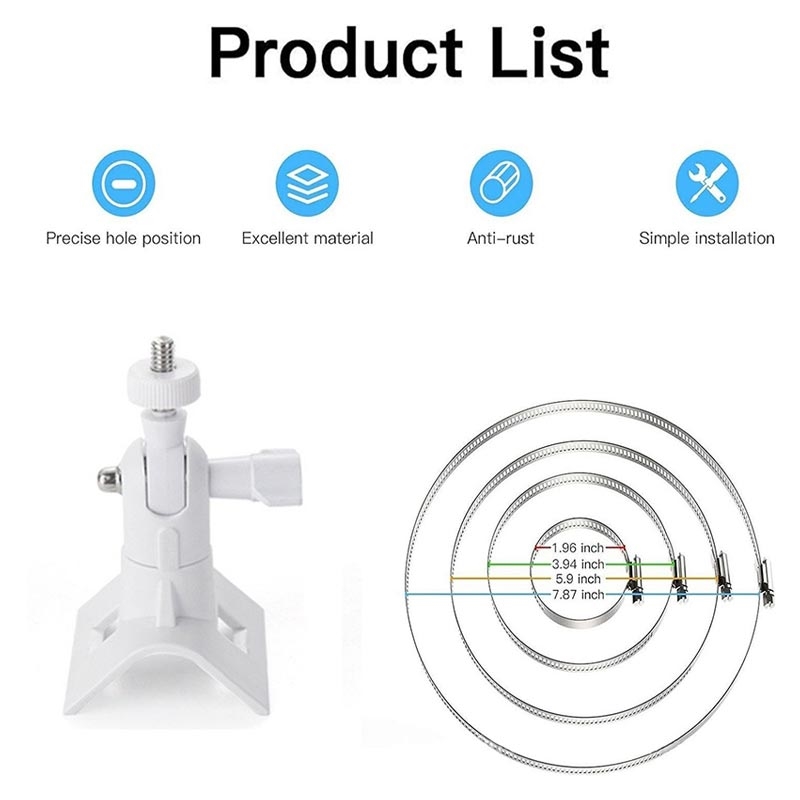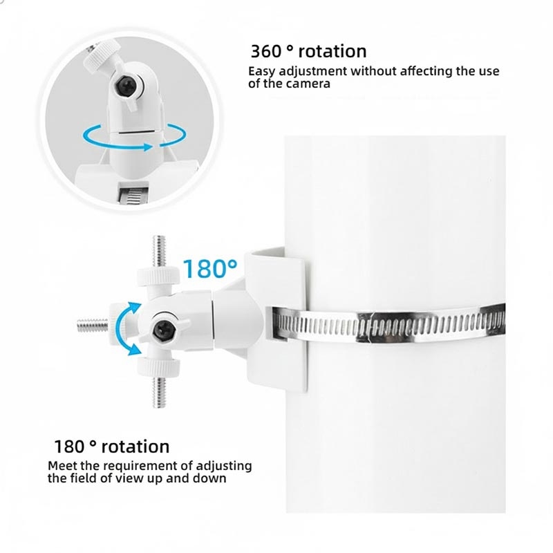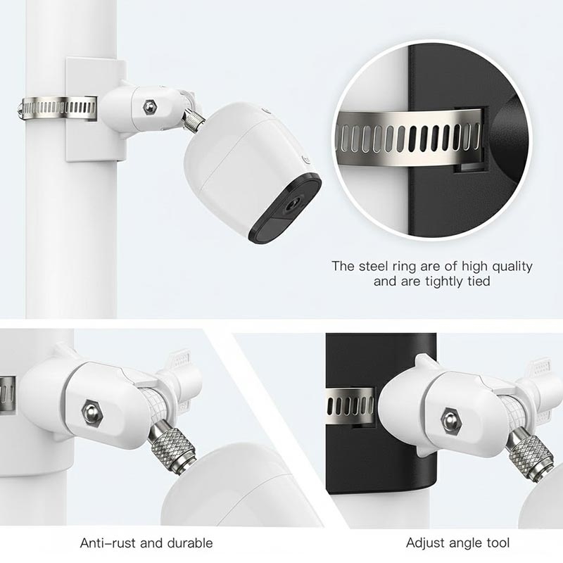 Echipat cu o clemă din oțel inoxidabil, suportul oferă o forță de prindere puternică și stabilitate pe termen lung. Acesta menține în siguranță camera pe stâlpi sau structuri rotunde, chiar și în condiții de exterior.