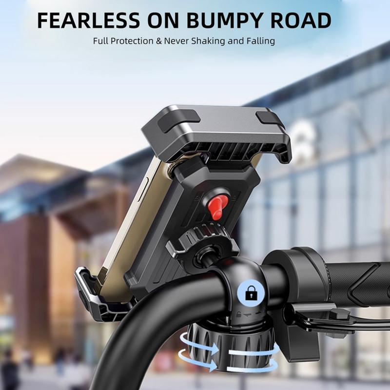 - Suport pentru telefon montat pe ghidon, conceput pentru motociclete și vehicule similare