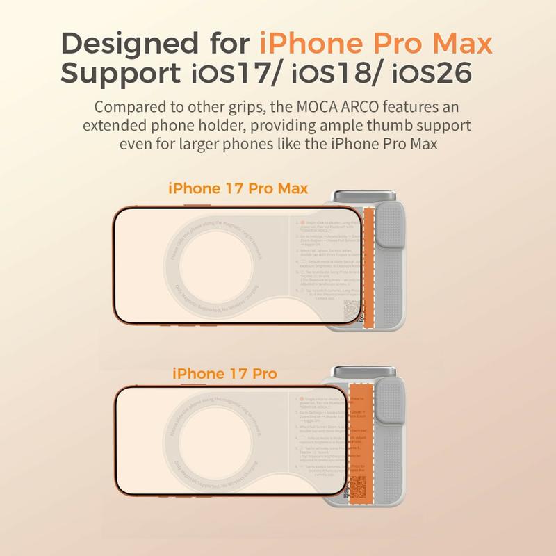 MOCA ARCO este perfect dacă doriți mai mult control și confort atunci când utilizați iPhone-ul pentru fotografii, videoclipuri sau crearea de conținut. În loc să țineți telefonul direct în mână, beneficiați de o prindere similară cu cea a unei camere foto, funcții rapide de control de la distanță și suport suplimentar pentru iluminare, totul într-un singur accesoriu. Este deosebit de util pentru utilizatorii care înregistrează des și doresc o configurație de filmare mobilă mai curată și mai practică.